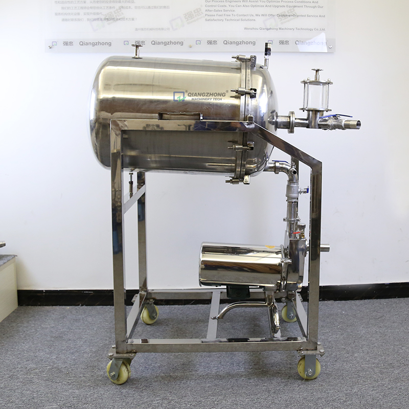 ● 本设备由壳体、中间轴、过滤板、过滤网、导杆、气阀、玻璃视镜、胶轮等件组成,所有液体接触的机件,均采用不锈钢材料制成,壳体分为多节、单节、节间用橡胶密封圈密封,便于拆卸清洗。